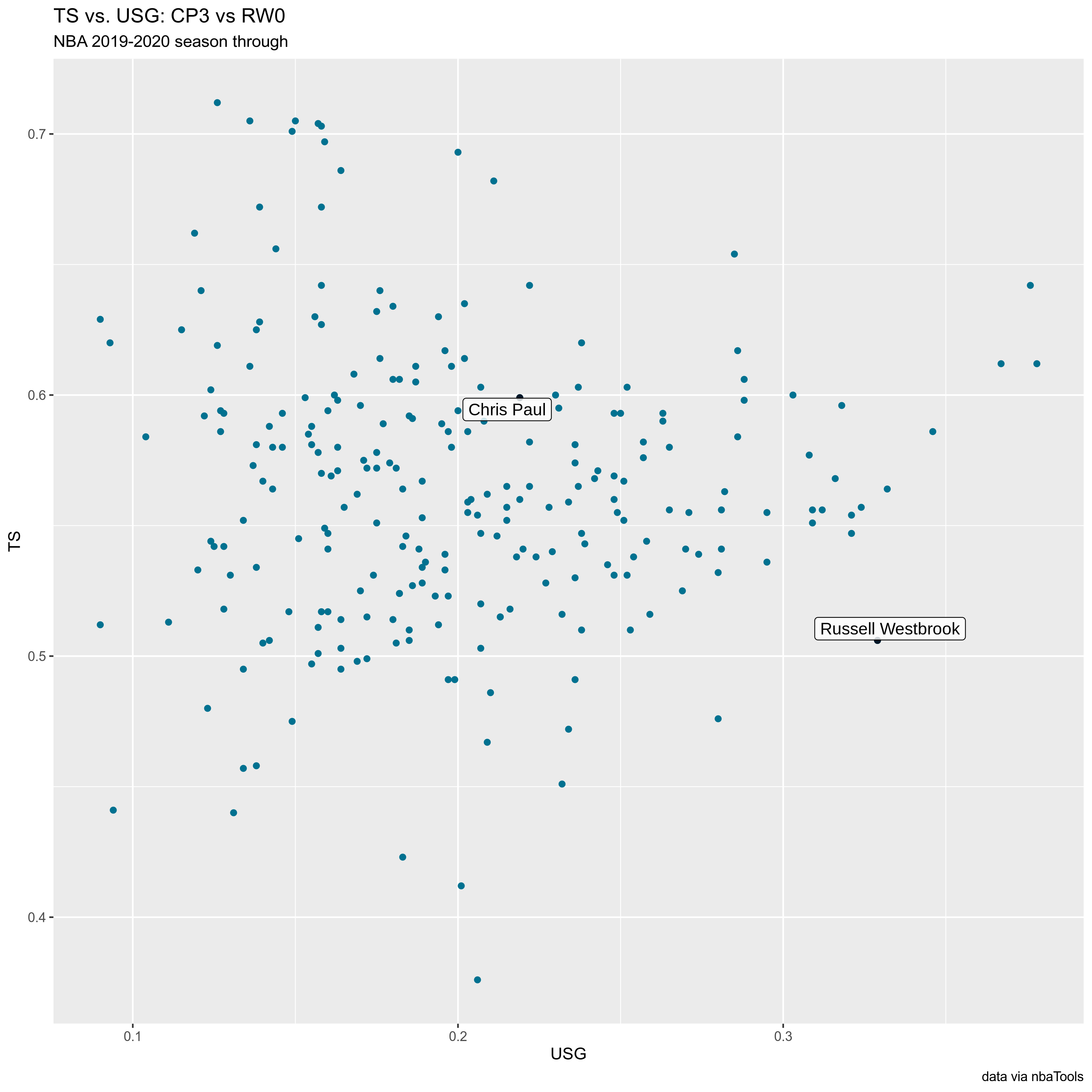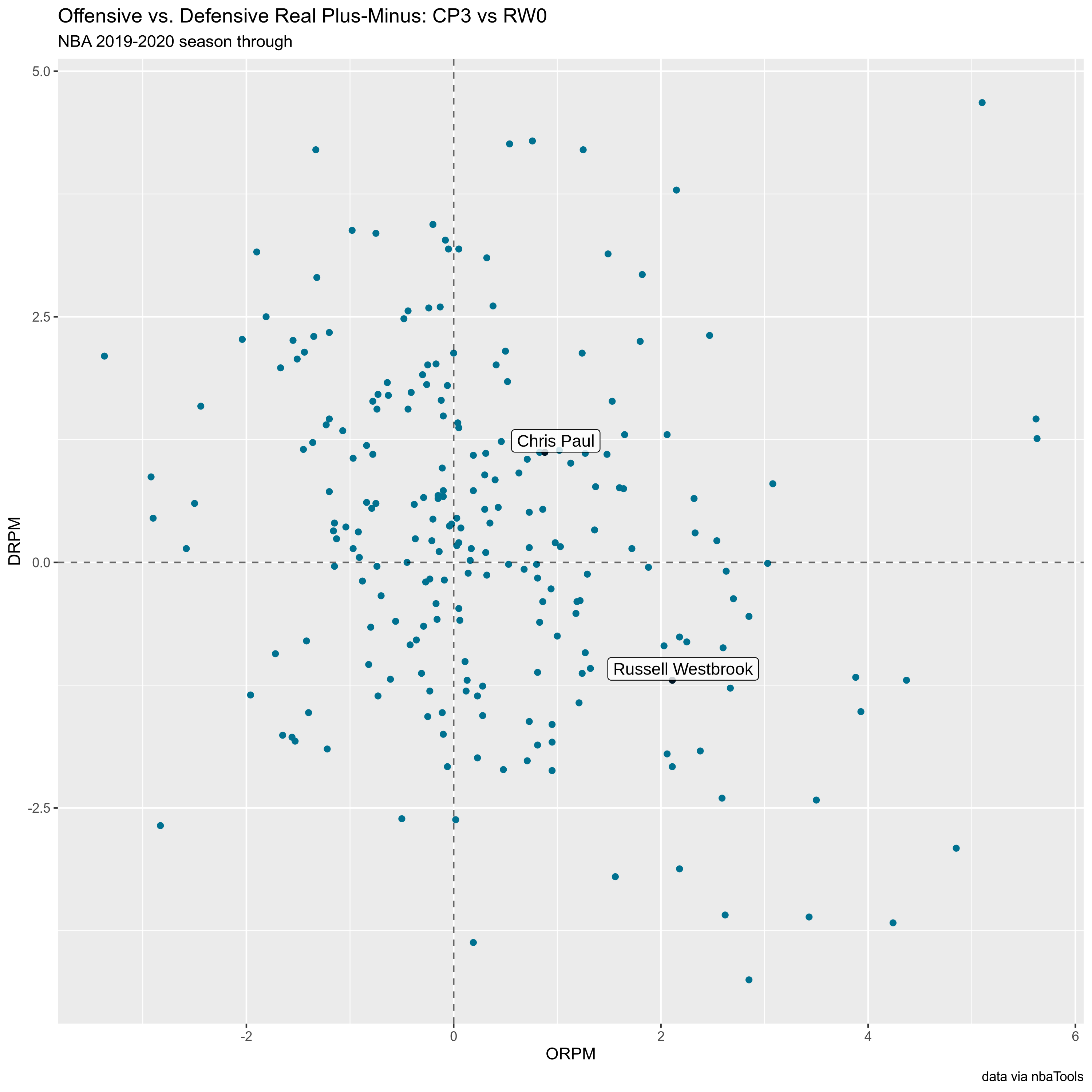 2017-2018赛季西部第二轮第6场,保罗扛着自己进了西部决赛,这可能是保罗最 后的荣光。2017-2018赛季西部决赛第5场,保罗拼到大腿拉伤,余下两场火箭轮 换不足,不得已采用开场抢攻的策略,结果都被翻盘,未能拿到通往总决赛的门 票。2018-2019赛季,西部半决赛再次遇到卫冕冠军勇士,为什么我只记得杜兰 特伤退、库里半场爆炸,然而火箭似乎没有亮点。之后开始飘出灯泡不和的传言, 在卡哇伊携手乔治联手加盟快船这一搅动联盟的保密交易下,雷霆果断重建并与 火箭互换威少、保罗,接受了包括的4000万年薪。至此,在合同变更或结束之前, 保罗基本告别了进总决赛的可能。炮哥和威少的互换,只能算是火管和雷管各取 所需。雷霆重建要培养新人,而威少在队史上的地位和队内的威信反而成为了他 留在雷霆的最大障碍;而火箭连续两年倒在勇士脚下,管理层不得不作出改变。 虽然雷霆目的是重建,然而炮哥来到雷霆之后拒绝摆烂,硬是带着几个年轻人把 战绩带到西部第七,目前来看排名还非常稳。从EPSN发布的RPM数据来看,本赛 季到目前为止,炮哥的RPM还是优于威少的,如下图所示